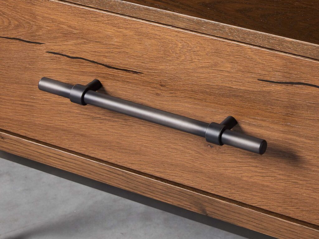 Bringing style and functionality to your entertainment space, our media wall unit is a unique blend of contemporary design and rustic charm. Artisan-crafted to provide ample storage for your media essentials, this console is the perfect way to organize and showcase your equipment. Its sleek and sophisticated design is sure to become a focal point in your home.